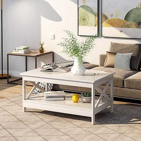 Generies Living Room Modern X Design Coffee Table Wooden Side End Table With Storage Shelf White Amazon Co Uk Kitchen Home