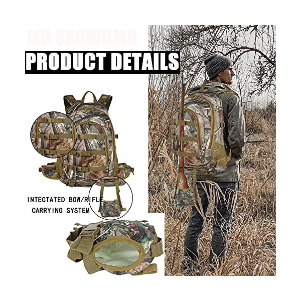 Mdstop Outdoor Hunting Tactical Backpack With Gun Sling Bag With Integrated Long Hunting Day Packs Hiking Military Molle Multipurpose Heavy Duty Rifle And Bow Carrying Camo Backpacks Outdoor Day Pack Hunting Backpack